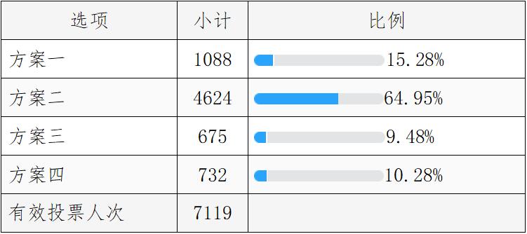 学校拟在校区扩建项目发展大道沿线建设学校新大门,为进一步优化完善新大门设计,打造出体现学校特色和品位,符合现代审美,广大师生认可的学校大门,将新大门设计4套候选方案于2022年5月20日至2022年5月24日期间进行公开投票评选,现将投票结果公示如下: