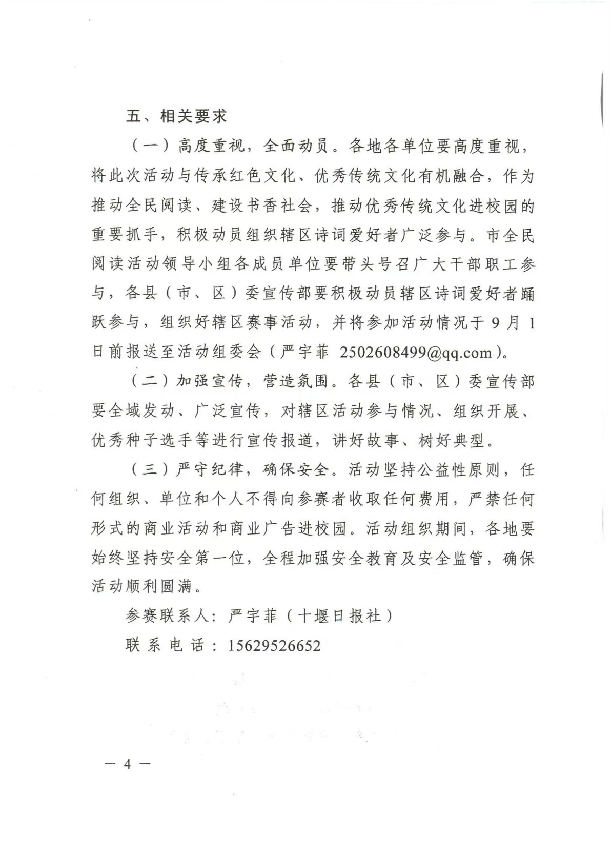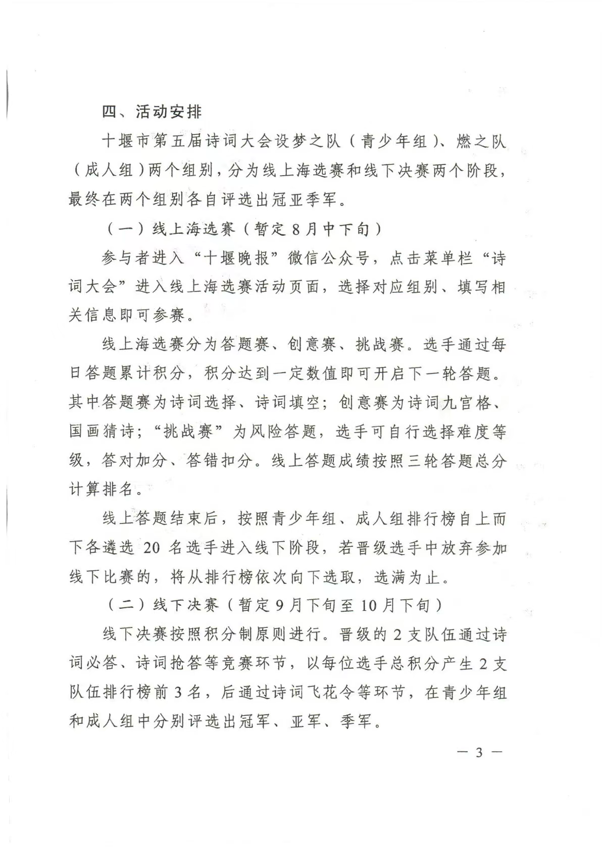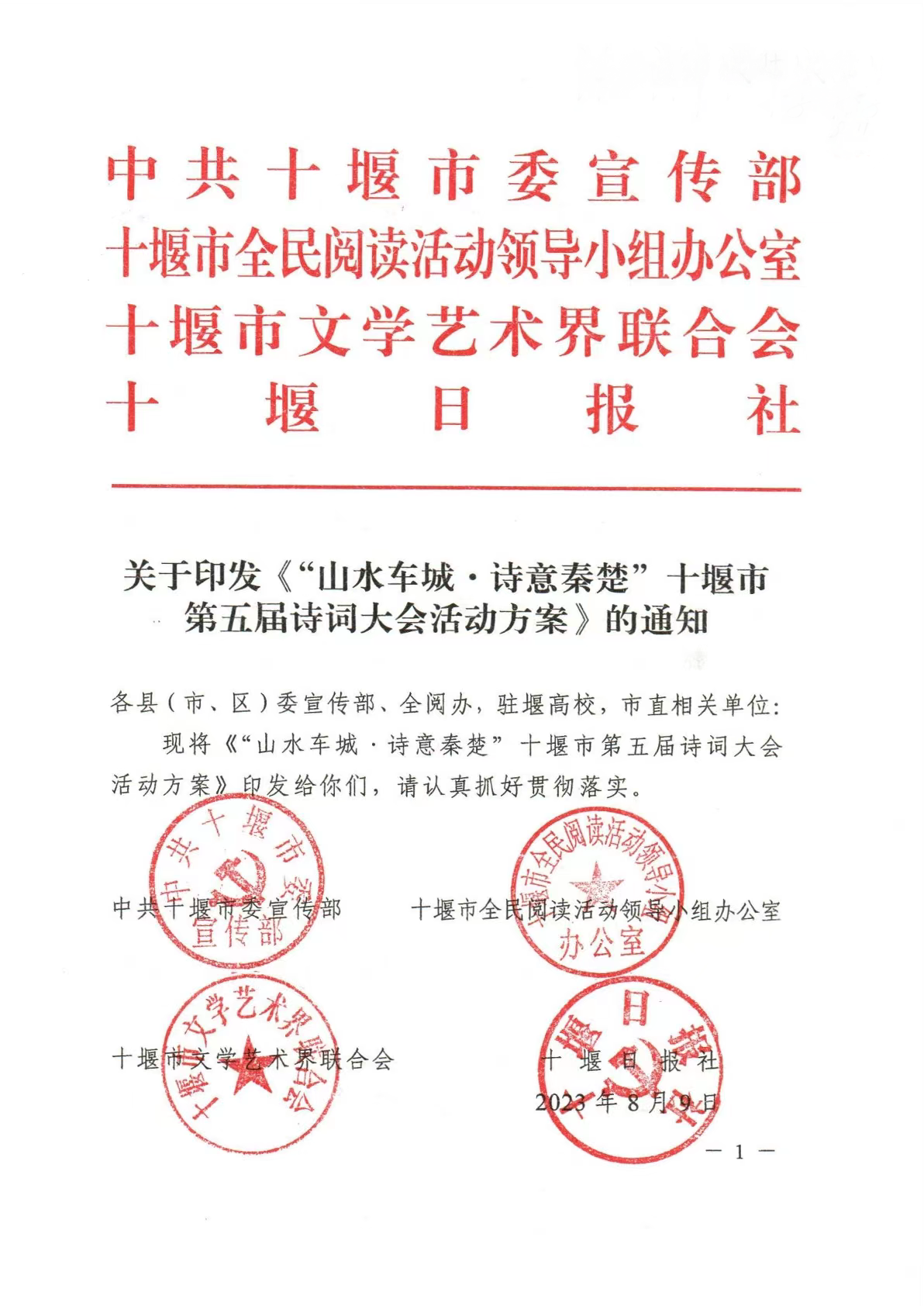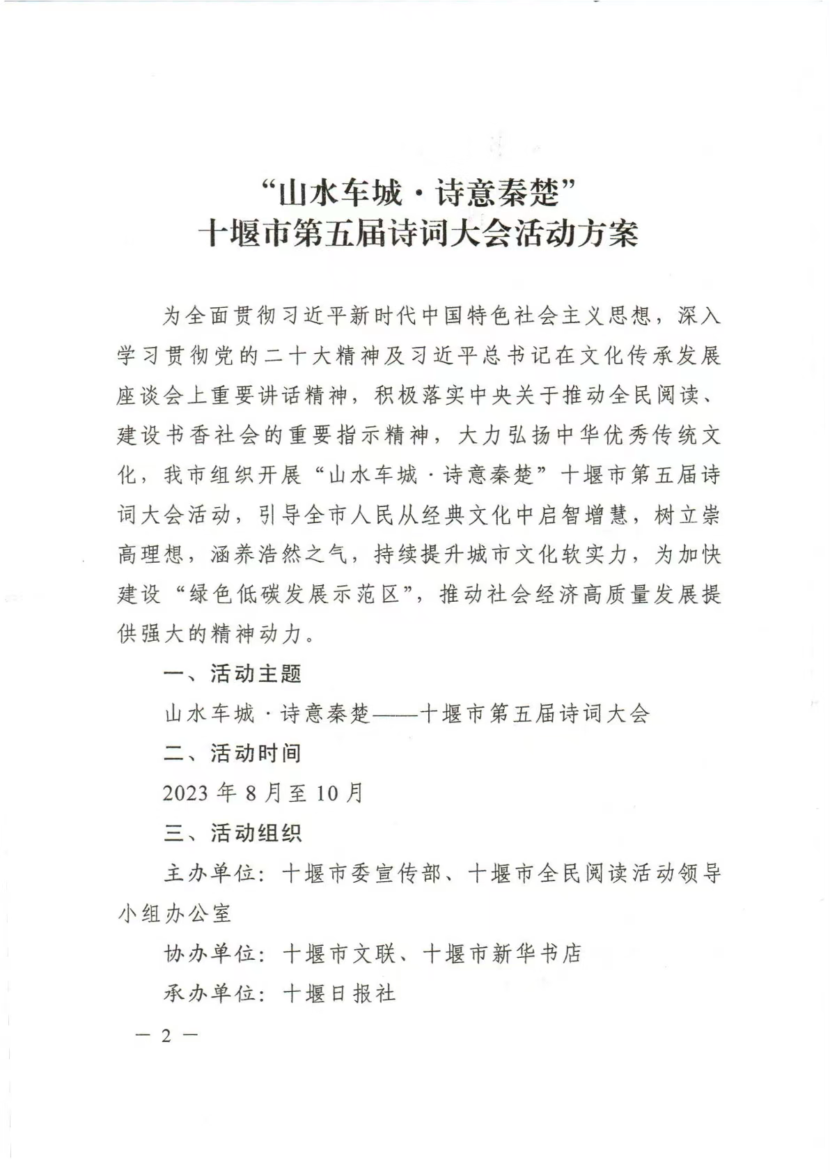 关于印发《“山水车城·诗意秦楚”十堰市第五届诗词大会活动方案》的通知