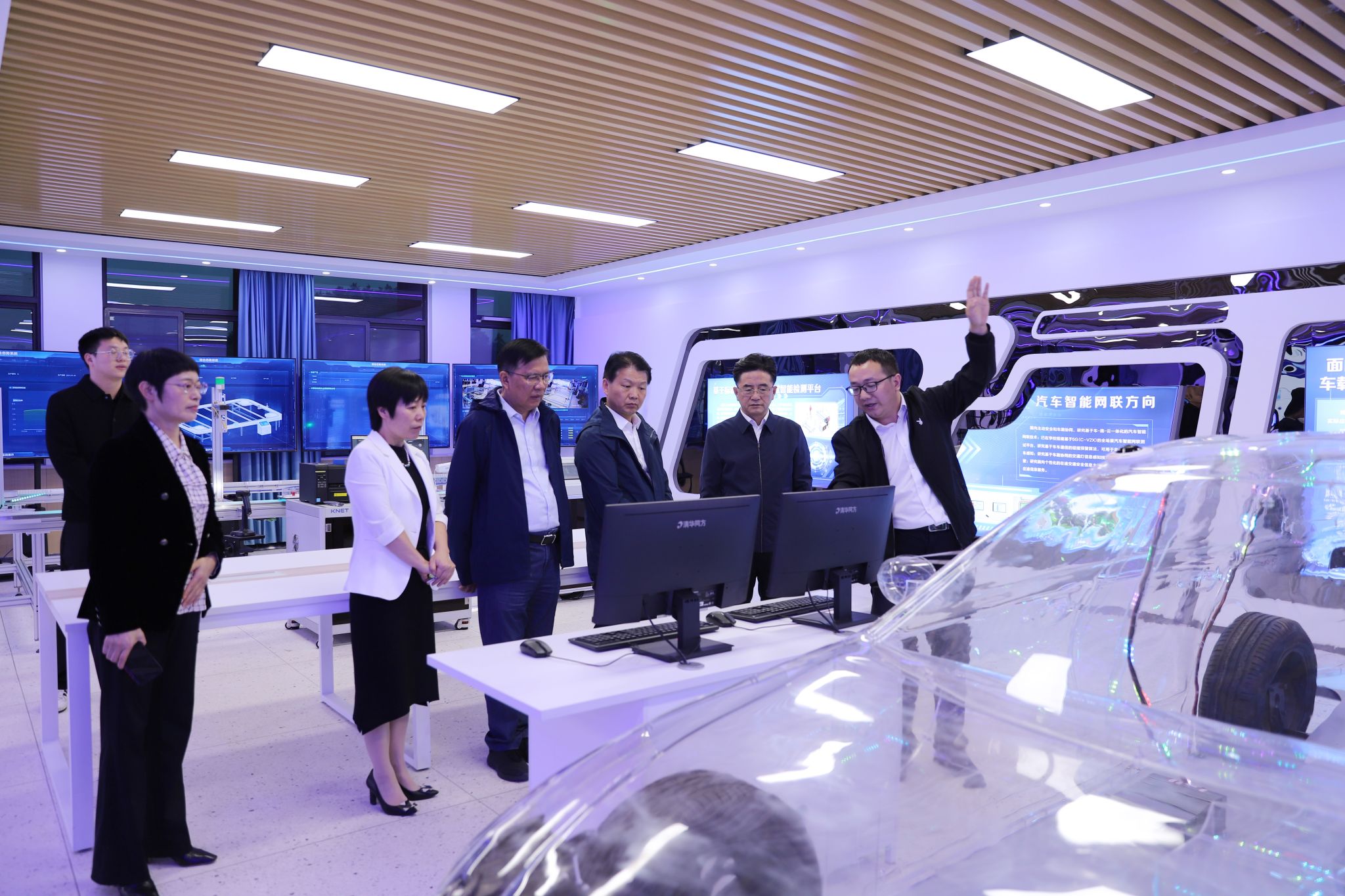张文学代表学校向向斌、王润章一行的到来表示欢迎,对长期以来对学校建设发展的关心和支持表达了感谢。在参观过程中,张文学简要介绍了学校发展历程、取得成绩、“三步走”发展战略、实验室建设、科技创新及成果转化等情况。张文学表示,学校将进一步聚焦人才培养、科技创新,为湖北省提供强有力的发展智库和人才支撑,为汽车产业转型升级和区域经济社会发展贡献汽院力量。