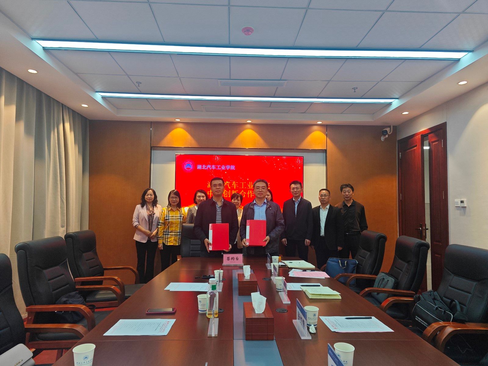 本网讯(文/罗诗棋)10月11日,湖北省科技厅对外合作处副处长雷灿、湖北省对外科技交流中心(中非创新合作中心)副主任李刚、湖北省对外科技交流中心信息资源部部长吴帆一行3人莅临我校,与学校在产教大楼三楼多功能会议室举行合作签约仪式。副校长张红霞出席签约仪式并致辞,国际合作交流处处长朱战炜主持仪式。