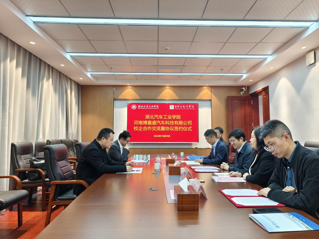 本网讯(文/图 唐赫美)10月28日下午,学校与河南博嘉盛汽车科技有限公司合作签约仪式在产教大楼三楼312会议室举行。会前,党委常委、党政办公室主任王文山热情接待河南博嘉盛汽车科技有限公司总经理刘云甲、副总经理汤昆武一行。