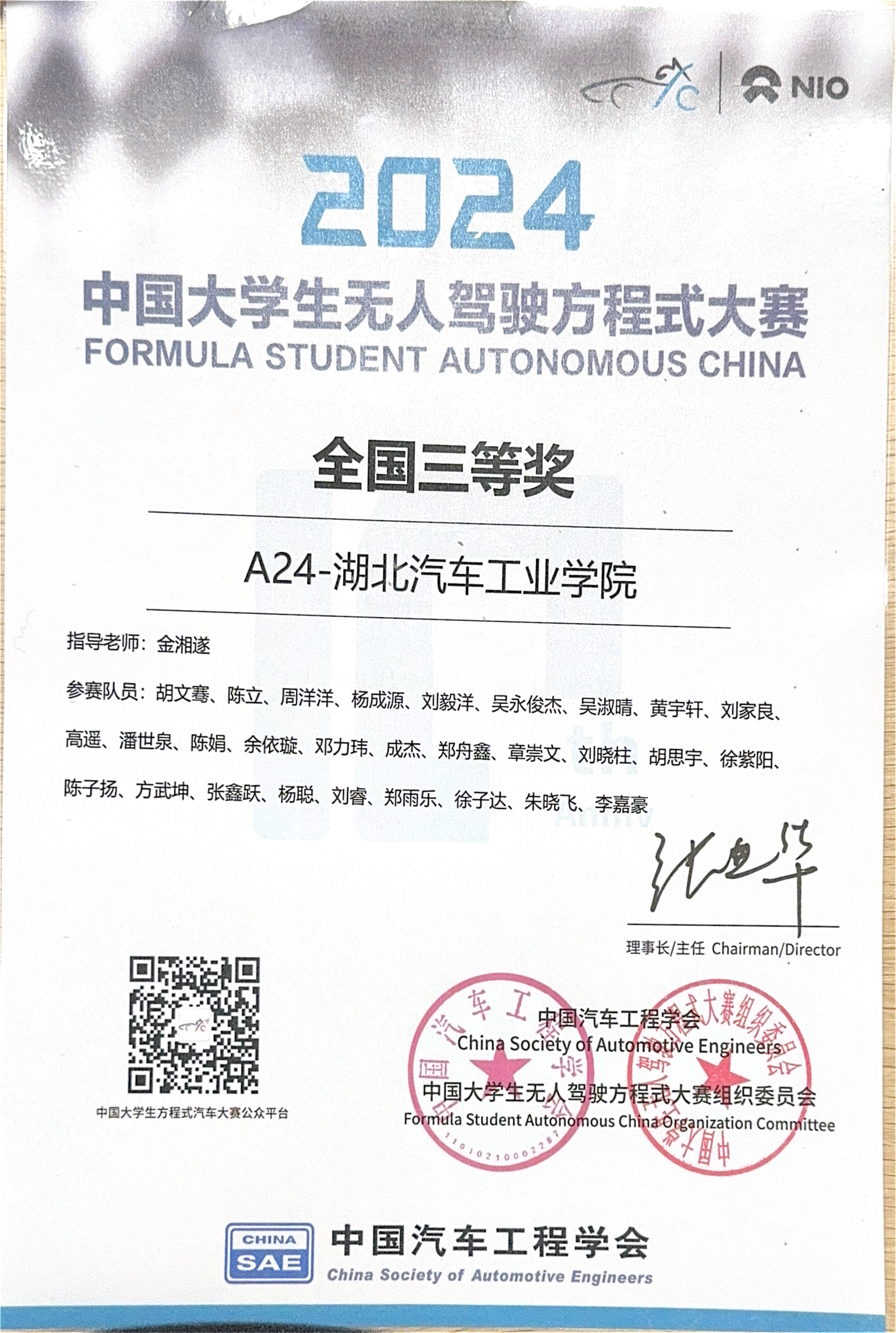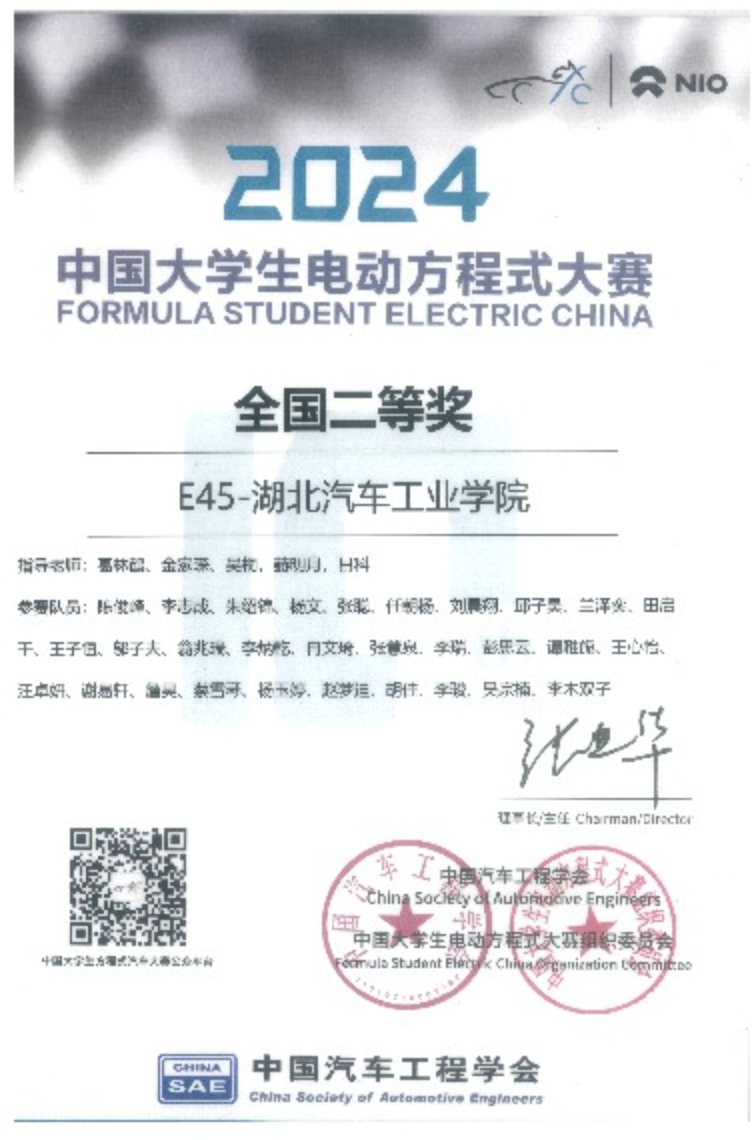 10月20日,2024“蔚来杯”中国大学生电动方程式大赛(FSEC)&“蔚来杯”中国大学生无人驾驶方程式大赛(FSAC)在安徽省合肥市包河区骆岗公园收官。在为期五天的比赛中,我校电动方程式赛车队在117支车队中脱颖而出,获得全国二等奖。其中成本报告第1名、MATLAB设计仿真第3名、直线加速第5名、高速避障第9名。无人驾驶方程式赛车队获得全国总成绩三等奖。