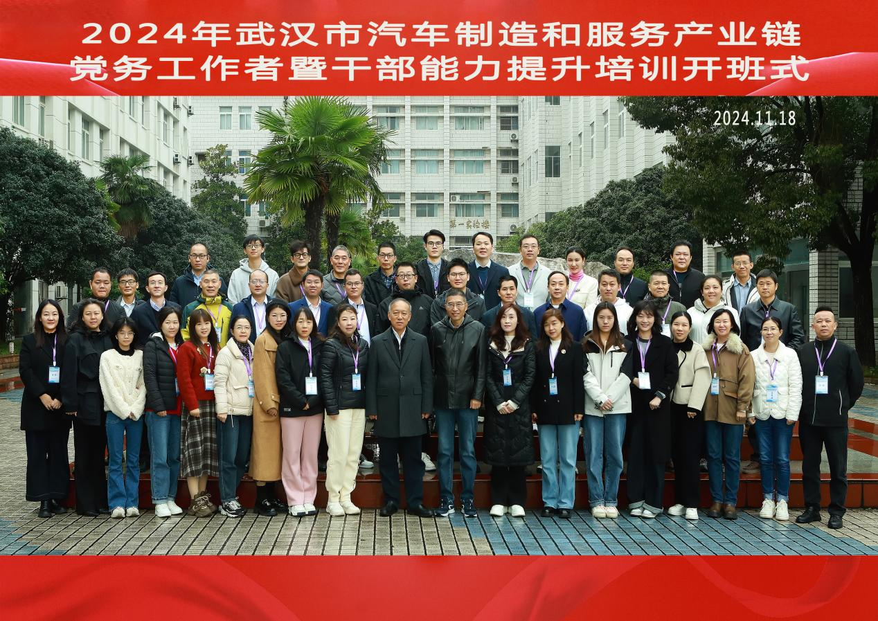 本网讯(文/图 丁嘉)11月18日,武汉市2024年汽车制造和服务产业链党务工作者暨干部能力提升培训班在我校举行。武汉市经济和信息化局副局长、武汉市汽车制造和服务产业链综合党委书记李林清,我校工会主席陈海峰出席开班式,来自东风商用车、东风乘用车、东风本田等40余家产业链龙头企业的党务工作者和业务骨干参加此次培训。开班式由武汉市经信局汽车产业处处长洪云飞主持。