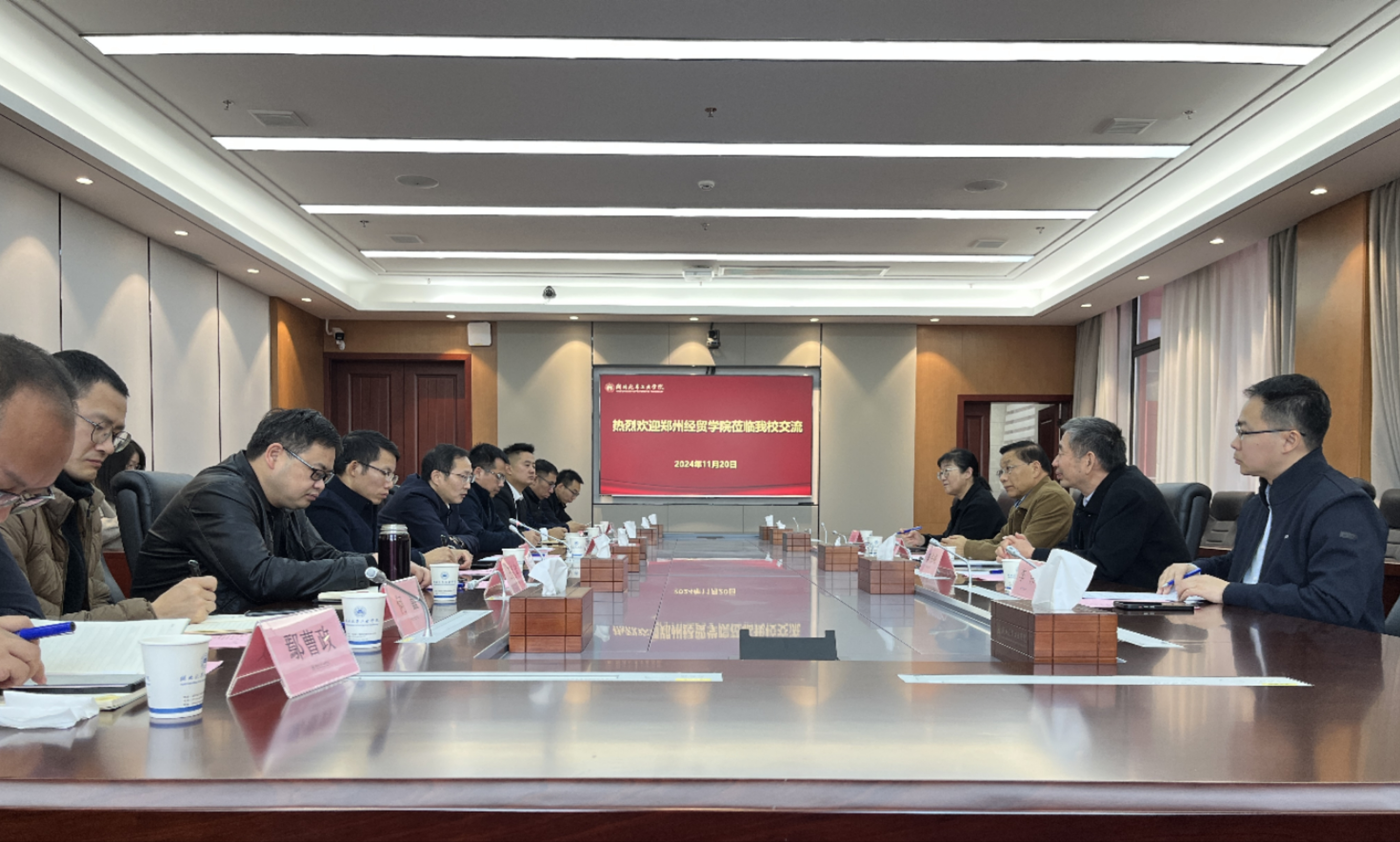 本网讯(文/胡姜)11月20日,郑州经贸学院副校长刘登义一行来校就学科建设工作开展调研交流。我校党委副书记李涛热情接待,并在产教大楼三楼会议室举行座谈。