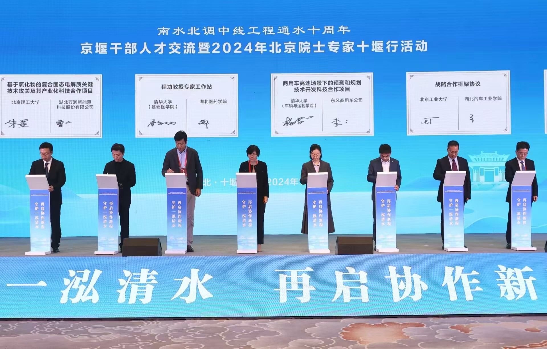 本网讯(文 王洪涛/图 十堰日报社、邓玉洁)11月22日上午,校党委书记张文学受邀参加“南水北调中线工程通水十周年京堰干部人才交流暨2024年北京院士专家十堰行”活动,并与北京工业大学党委常委、副校长王伟现场签署两校新一轮战略合作框架协议。