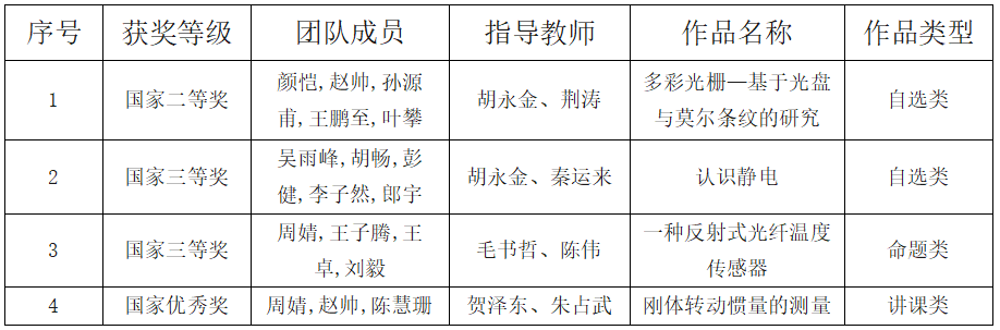 本网讯(文/陈伟)近日,第十届全国大学生物理实验竞赛(创新)总决赛在北京航空航天大学沙河校区举行。本届赛事共有来自全国31个省市自治区以及香港、澳门地区的667所高校、2755支队伍、14700余名师生参加。经过前期的预选赛阶段,280所高校548支优秀代表队脱颖而出,共计1400余名师生进入到现场决赛环节。经过激烈角逐,我校共获全国二等奖1项,三等奖2项,优秀奖1项,获奖层次和数量位于全国高校前列。