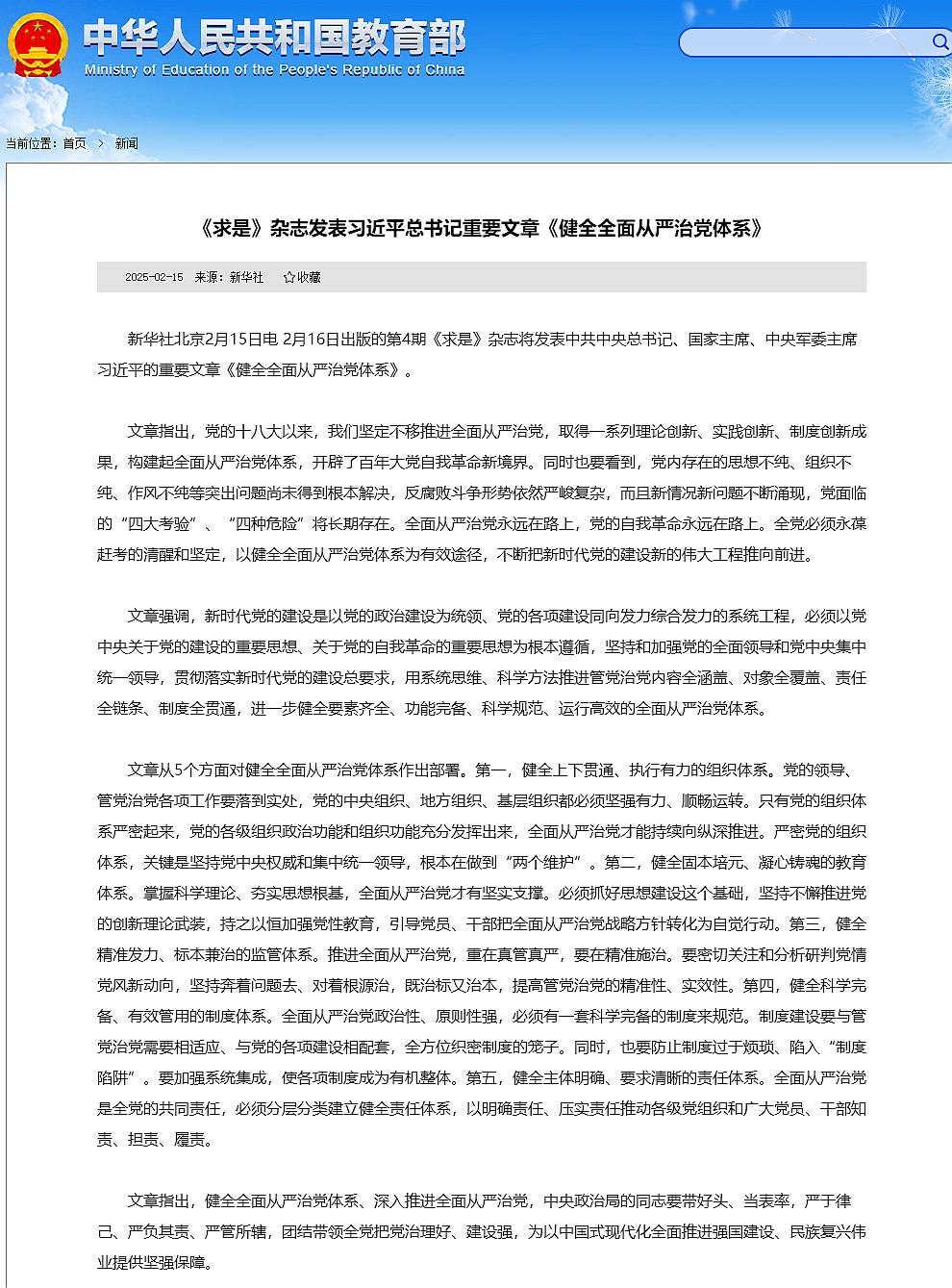 【学习进行时】《求是》杂志发表习近平总书记重要文章《健全全面从严治党体系》