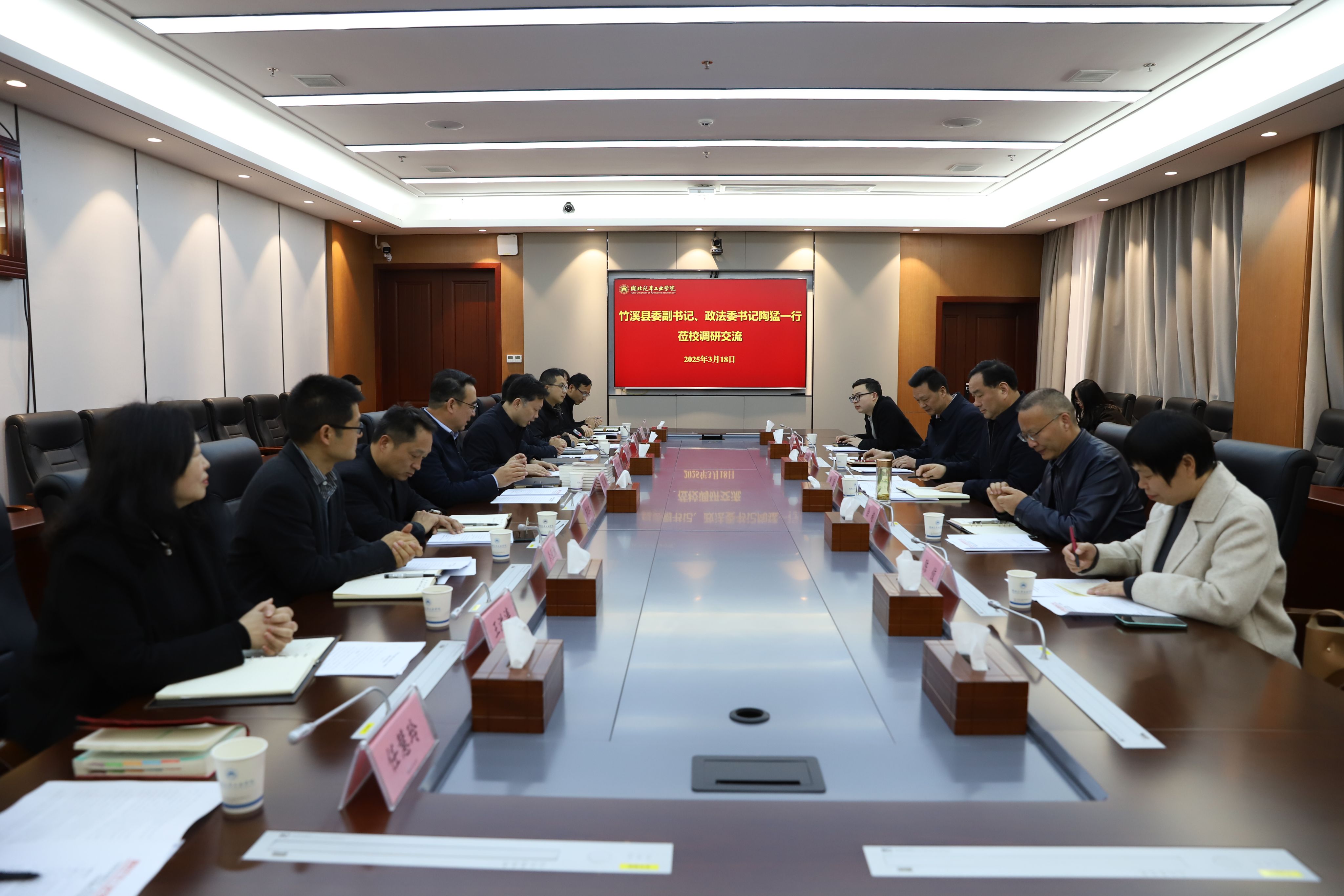 本网讯(文 徐跃廷/图 邓玉洁)3月18日上午,竹溪县委副书记、政法委书记陶猛,县政府办公室副主任徐超,县委组织部副部长汪再根,县教育局党组成员陈佼,县委组织部人才股股长李小保一行5人莅临我校,在产教大楼三楼多功能会议室举行战略合作座谈交流,我校党委副书记、校长王晓参加座谈会。