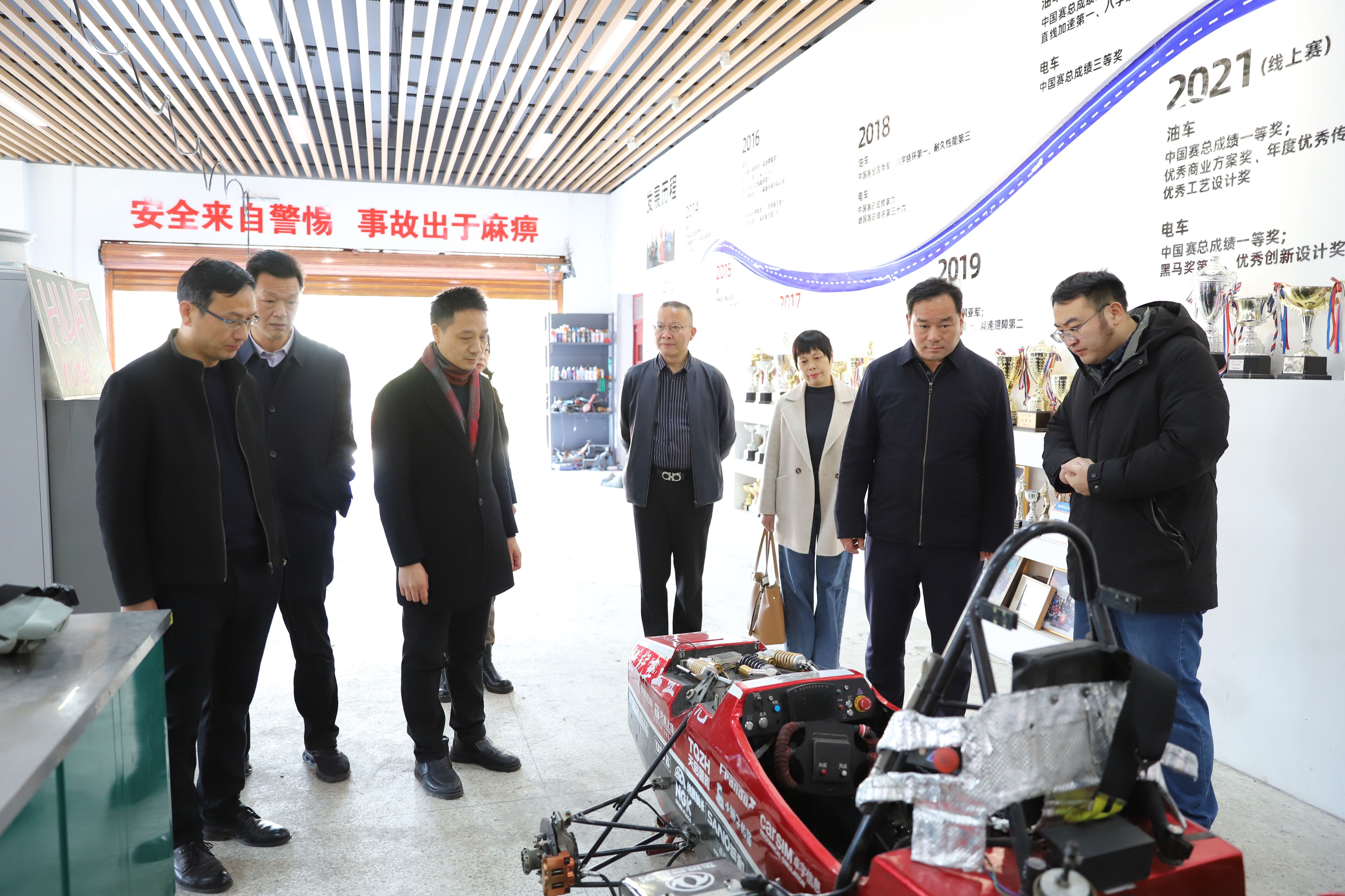 会前,陶猛一行在党委常委、党政办主任王文山的陪同下考察新校区,参观了校史馆、科创展厅、东风HUAT车队、汽车动力传动与电子控制湖北省重点实验室。