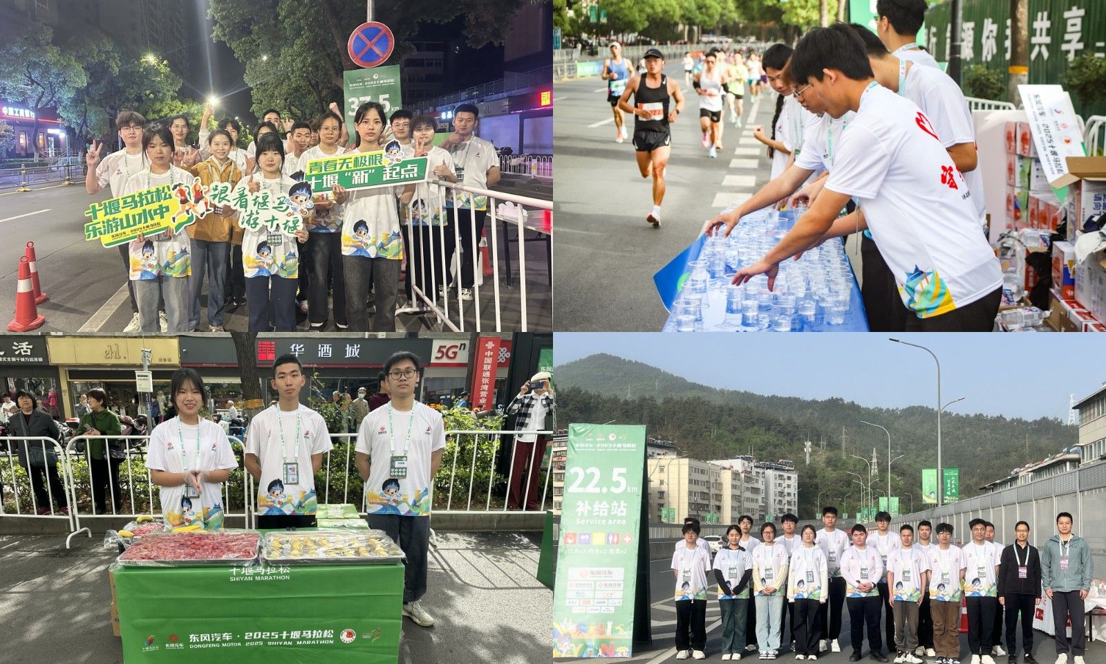 本网讯(文 高歌、李旭/图 青年传媒中心)4月13日,2025十堰马拉松在十堰奥体中心正式鸣枪起跑,来自国内外的两万余名跑者一起用汗水挥洒运动激情。我校577名师生志愿者分别在赛道指引、补给站、收容车等46个服务站点全力为赛事保驾护航,千余名师生观众在车城西路赛段为跑者激情呐喊,展现了汽院青年的青春热血和责任担当。