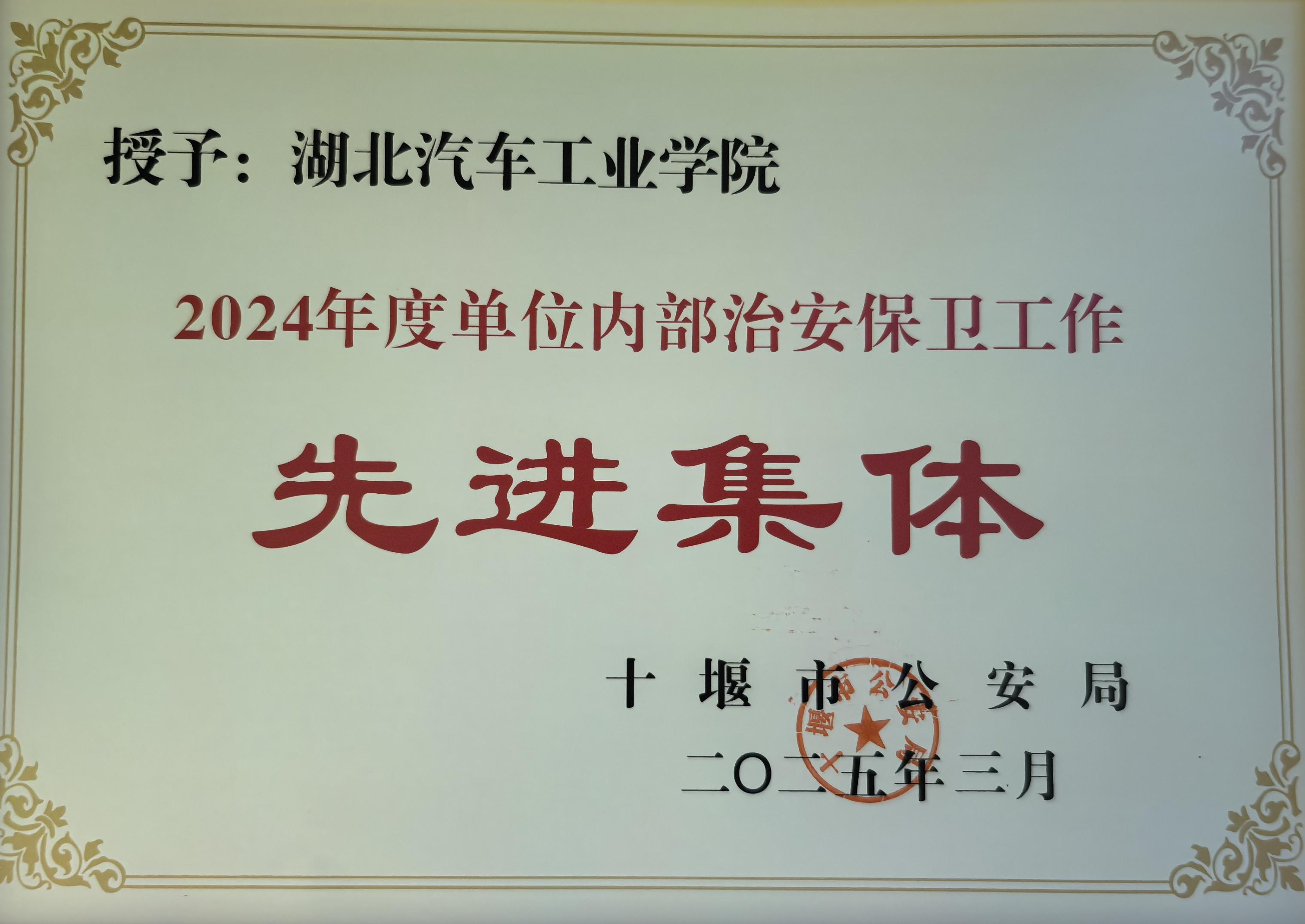 本网讯(文/图 官杰)近日,十堰市公安局通报表彰2024年度单位内部治安保卫工作先进集体,我校在防风险、保安全、护稳定、促发展各项工作中表现突出,获得年度内保先进工作单位,李海庆同志获得内保工作先进个人荣誉称号。