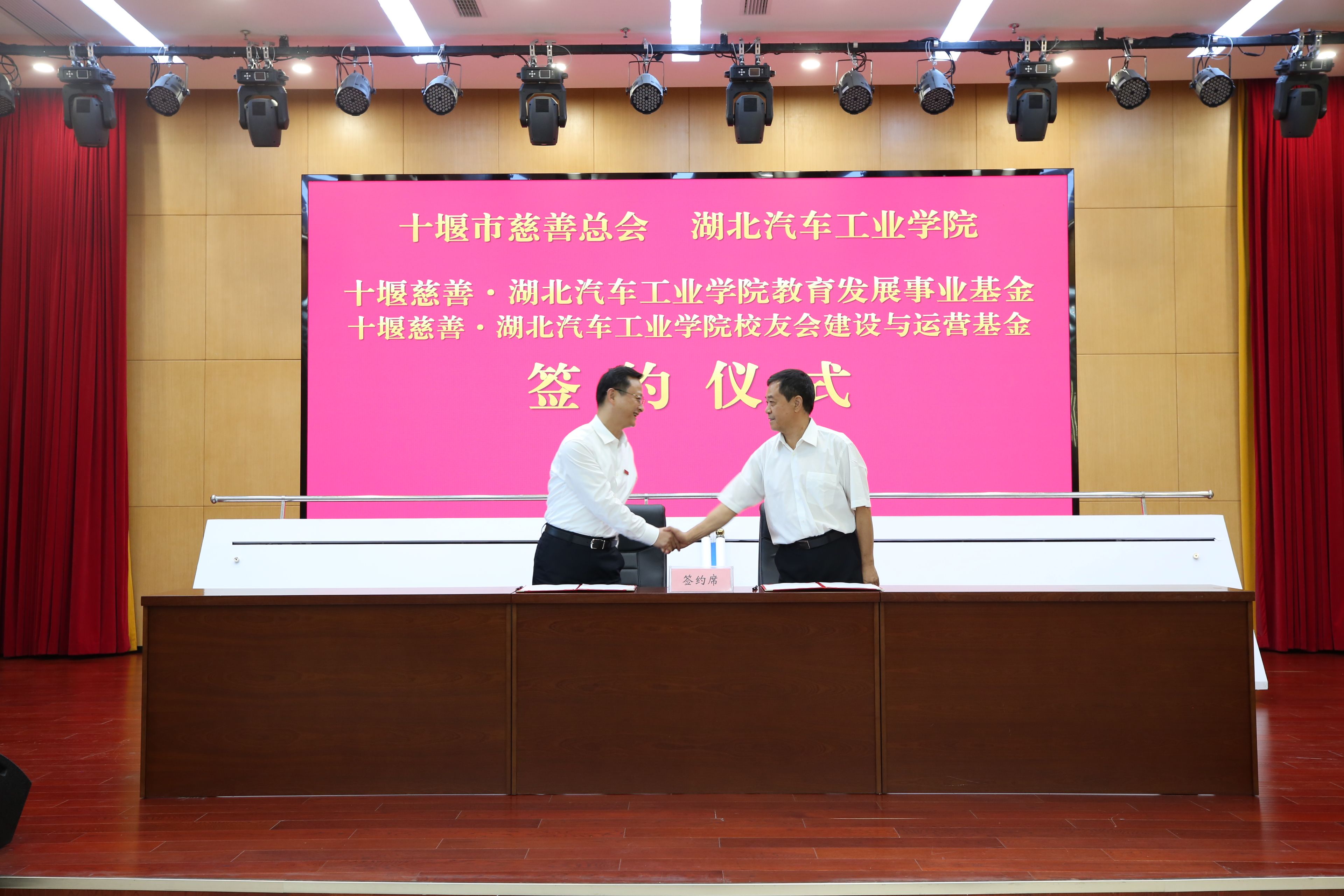 签约仪式上,陈建平代表我校与市慈善总会签订了慈善基金设立协议及物资捐赠协议。市慈善总会还分别与百强投资控股集团有限公司、市太和医院、市人民医院、武当山旅游经济特区游客服务中心、武当山道教协会、湖北武当山太和索道有限公司、湖北武当山旅游股份有限公司、十堰市武当山旅游经济特区慈善会签订了协议。