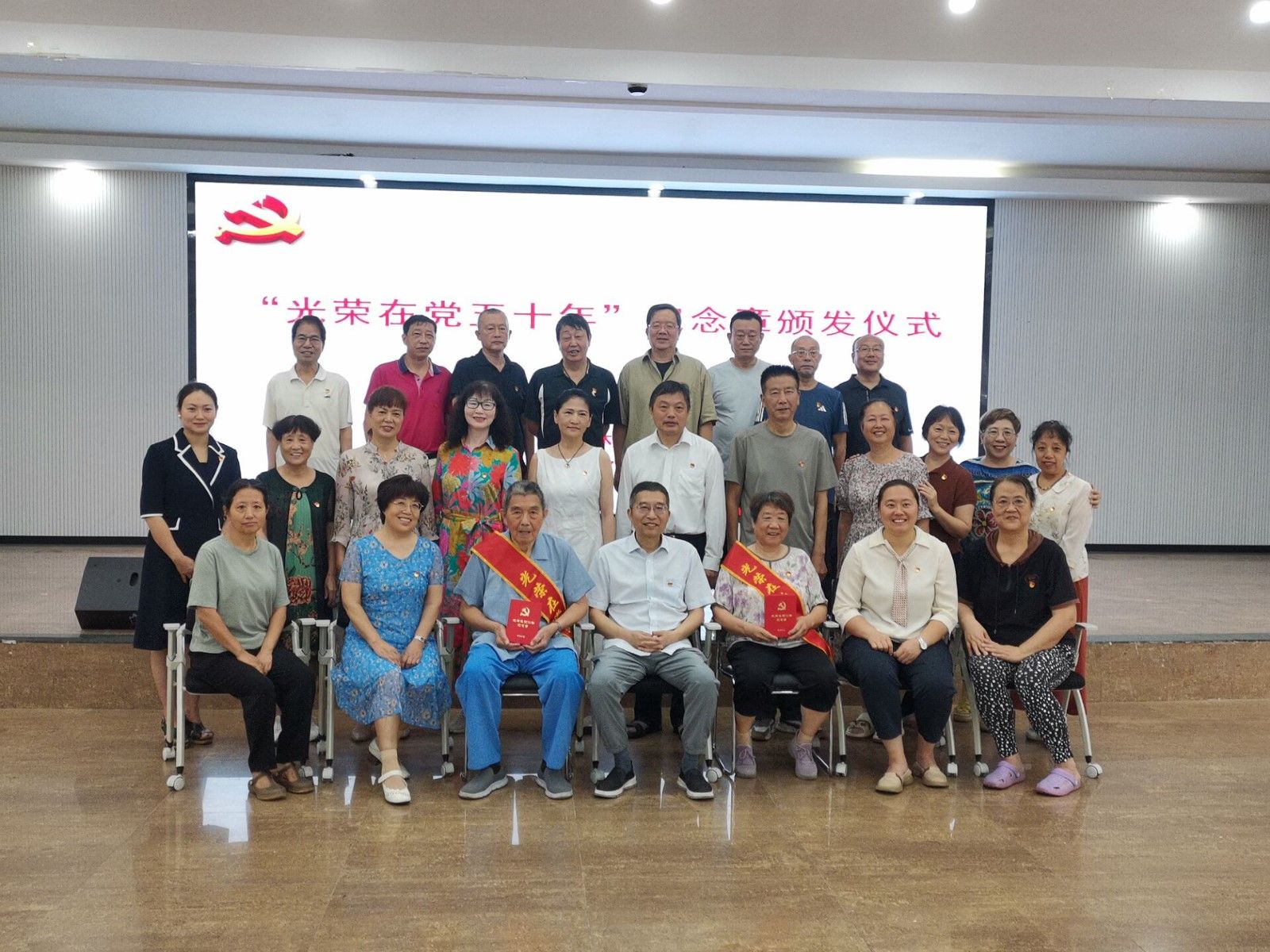 本网讯(文/图 杨桦)7月1日上午,学校在5101报告厅举行2025年度“光荣在党50年”纪念章颁发仪式。校工会主席陈海峰出席活动,为缪兴纯、李兴发、但书秀三位老党员颁发纪念章。截至目前,学校已有58名老党员获此殊荣。