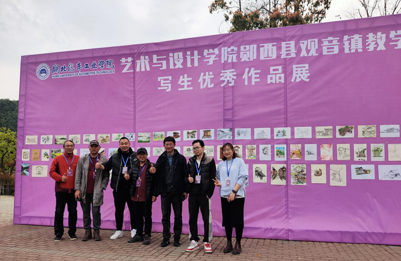 因受新冠肺炎疫情影响,学院充分调动诸多方面的资源,在郧西县政府和观音镇政府的大力支持下,学院在郧西县观音镇双石沟民俗村建立了教学实践基地,首批2019级115名学生在7名专业教师的带领下,分别去了樱花谷、上津古镇、双石沟民俗村、天河七夕景区、烈士陵园、革命纪念馆、乡村企业等风景区及红色基地进行写生参观等活动,在探索大自然优美风景的同时,老师们将课程思政融入写生实践,同学们不仅拓展了艺术视野,带来无限灵感,更进一步了解我党百年发展史,将党的优良传统与革命思想也体现在作品中。